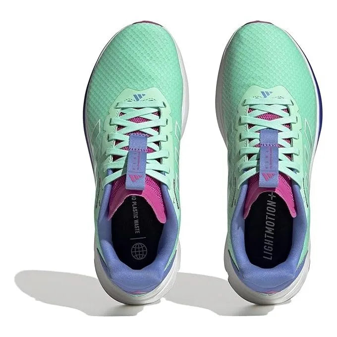 Any path can be your playground in these women's adidas running shoes. A Geofit collar gives you a comfortably snug fit while the Lightmotion+ midsole delivers superlight, explosive cushioning. Contoured medial support delivers a balanced feel with every step. This shoe is made with high-performance recycled materials and features an upper made with 50% recycled content.