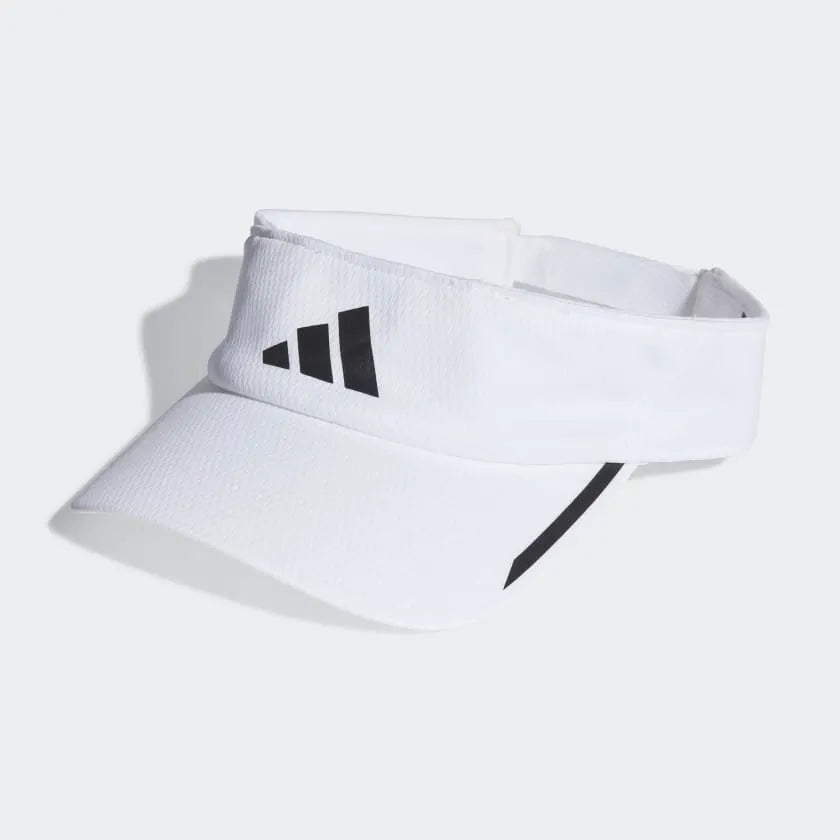 Bring some shade along on your afternoon run. This adidas running visor keeps the glare out of your eyes with its curved brim. Breathable mesh and moisture-absorbing AEROREADY keep you dry as you build heat. The hook-and-loop closure lets you adjust for the perfect fit. Made with a series of recycled materials, and at least 40% recycled content, this product represents just one of our solutions to help end plastic waste.