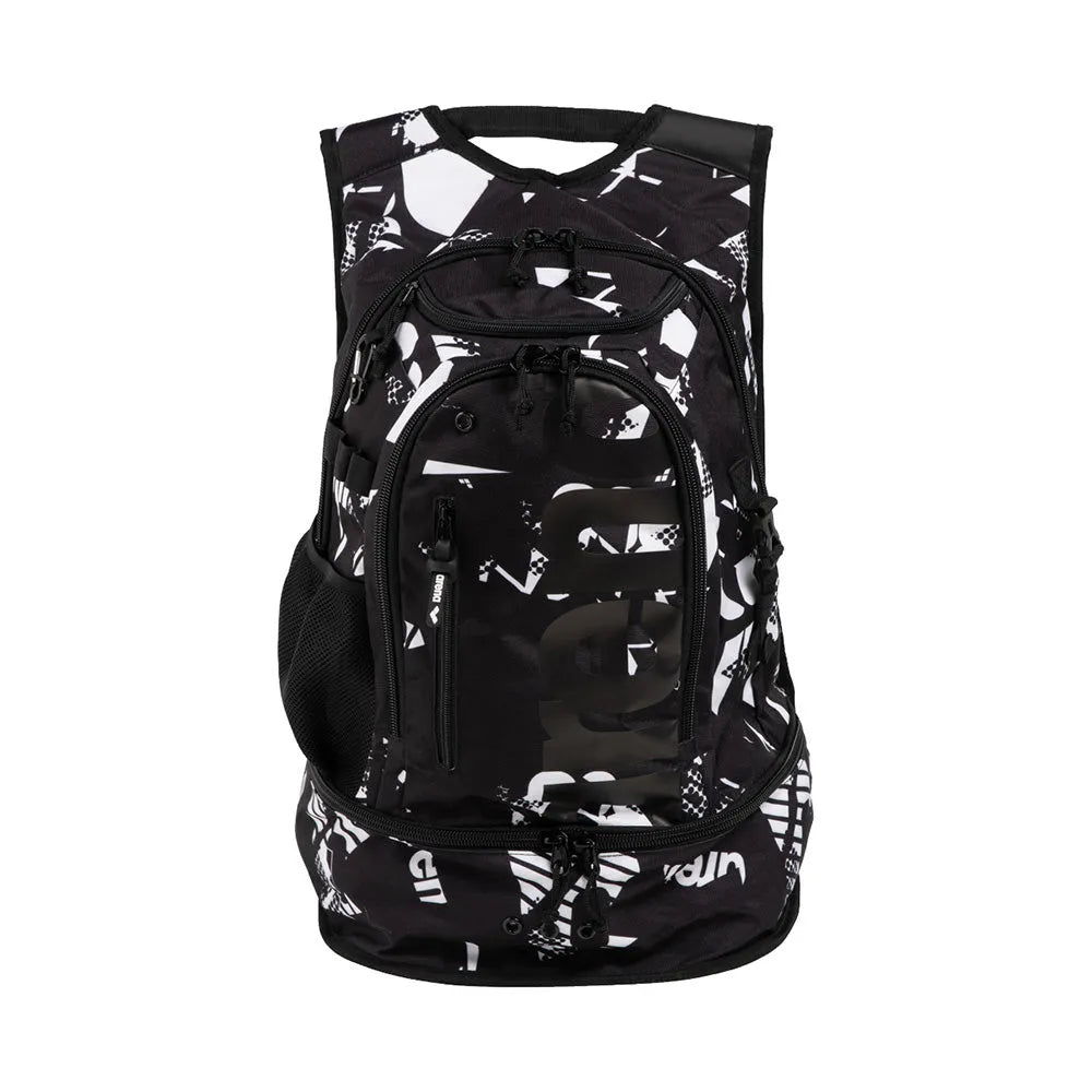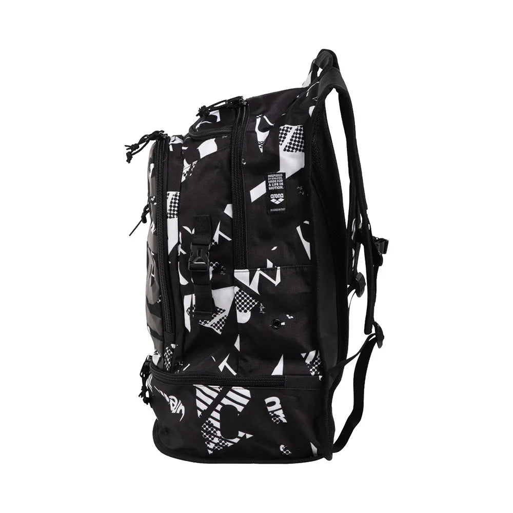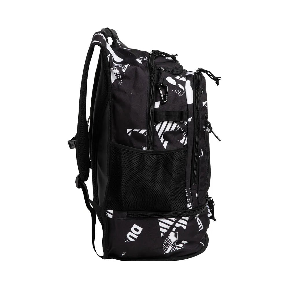 Covered in a cool multicolour motif our Allover Print Fastpack 3.0 perfectly combines high impact design with practicality. Created with our Smart Space Management system you can easily access your things with organized pockets and compartments. With 40 litres of capacity store your kickboard clothes accessories and up to two pairs of shoes. Crafted from a robust tech fabric this bag is equipped with smart details like moisture wicking mesh inserts pockets for water bottles and a chest strap. Use the separate swimbag for your pool items.