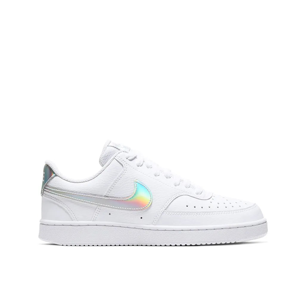 The Fastbreak style of '80s basketball meets the fast-paced culture of today's sports in the new Nike Court Vision Low. They have an upper inspired by vintage basketball shoes and iridescent details that change color depending on the light. Iridescent Swoosh design, tongue patch and heel that change color depending on the viewing angle. Rubber outsole with pivot points offers excellent grip and traction. The perforated toe box promotes breathability. Durable, lightweight synthetic leather and textile upper.