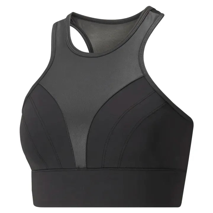 Modern athletic appeal abounds in this cropped bra top from our Moto range. Strong, sweeping lines and contrast fabrication sit alongside a sporty racerback design and lightweight spacer fabrication, with a breathable mesh back and dryCELL moisture-wicking technology – making it the perfect style-conscious choice for those high-intensity workouts.