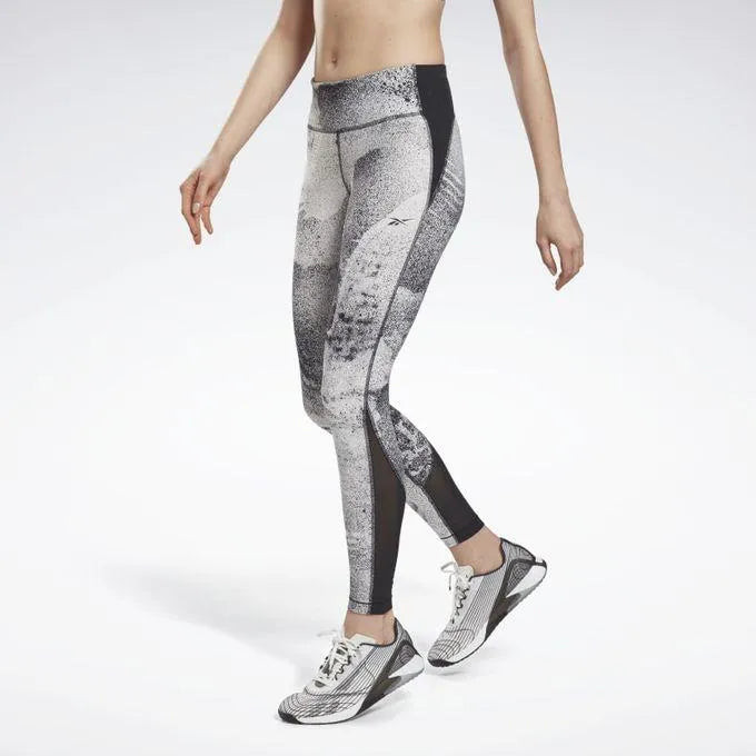 Train smart in these high-performance Reebok leggings. Compression fabric supports your muscles during your most intense sessions. Speed wick technology wicks away sweat so you can focus on your workout. Mesh ankle panels provide breathability. Bold prints add style.